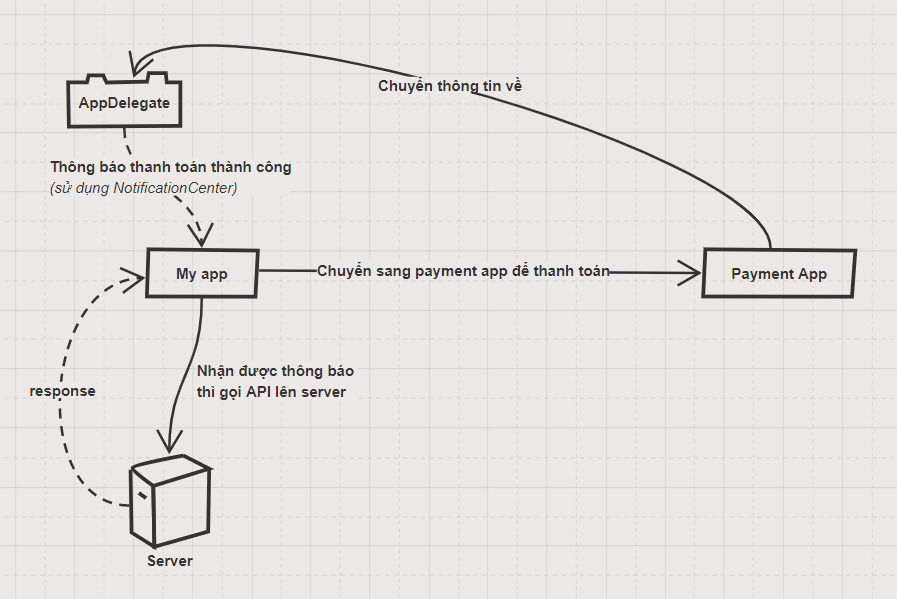 Hmm, nhìn vào sơ đồ bên trên và với thực tế bị duplicate API thì có vẻ lỗi nằm ở phần Notification Center. Và ở trong AppDelegate mình chỉ sử dụng đúng 1 tên duy nhất để thông báo. Vì vậy, rất có thể là đã có nhiều hơn 1 instance đã lắng nghe và gửi request lên server. Nhưng mà chỉ có duy nhất màn hình Payment là “hứng” cái thông báo đó thôi. Từ đó mình dự đoán màn hình Payment đang có vấn đề với Notification Center :fearful: